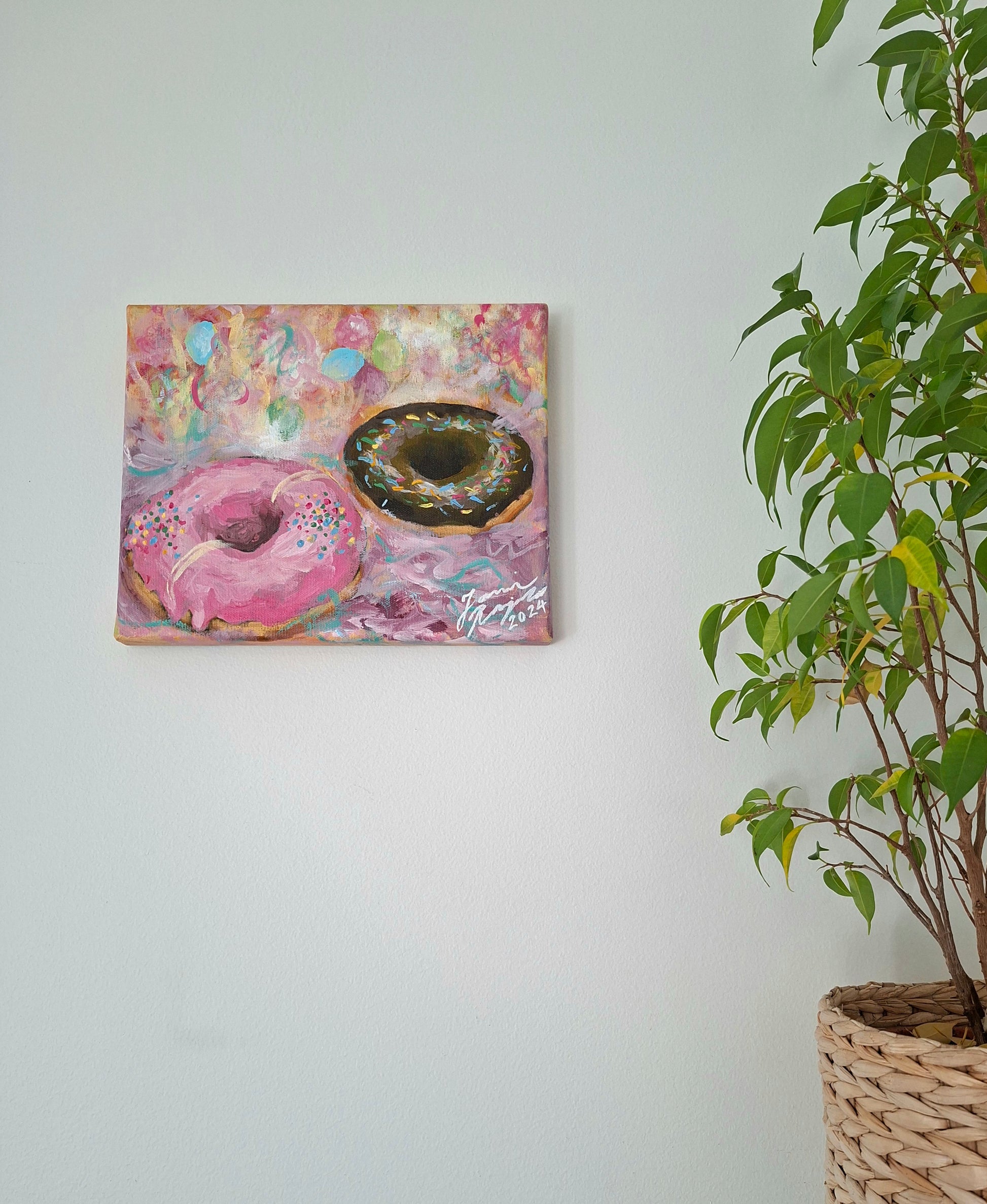 The painting is continuing on the edges. Varnished and ready to hang.
