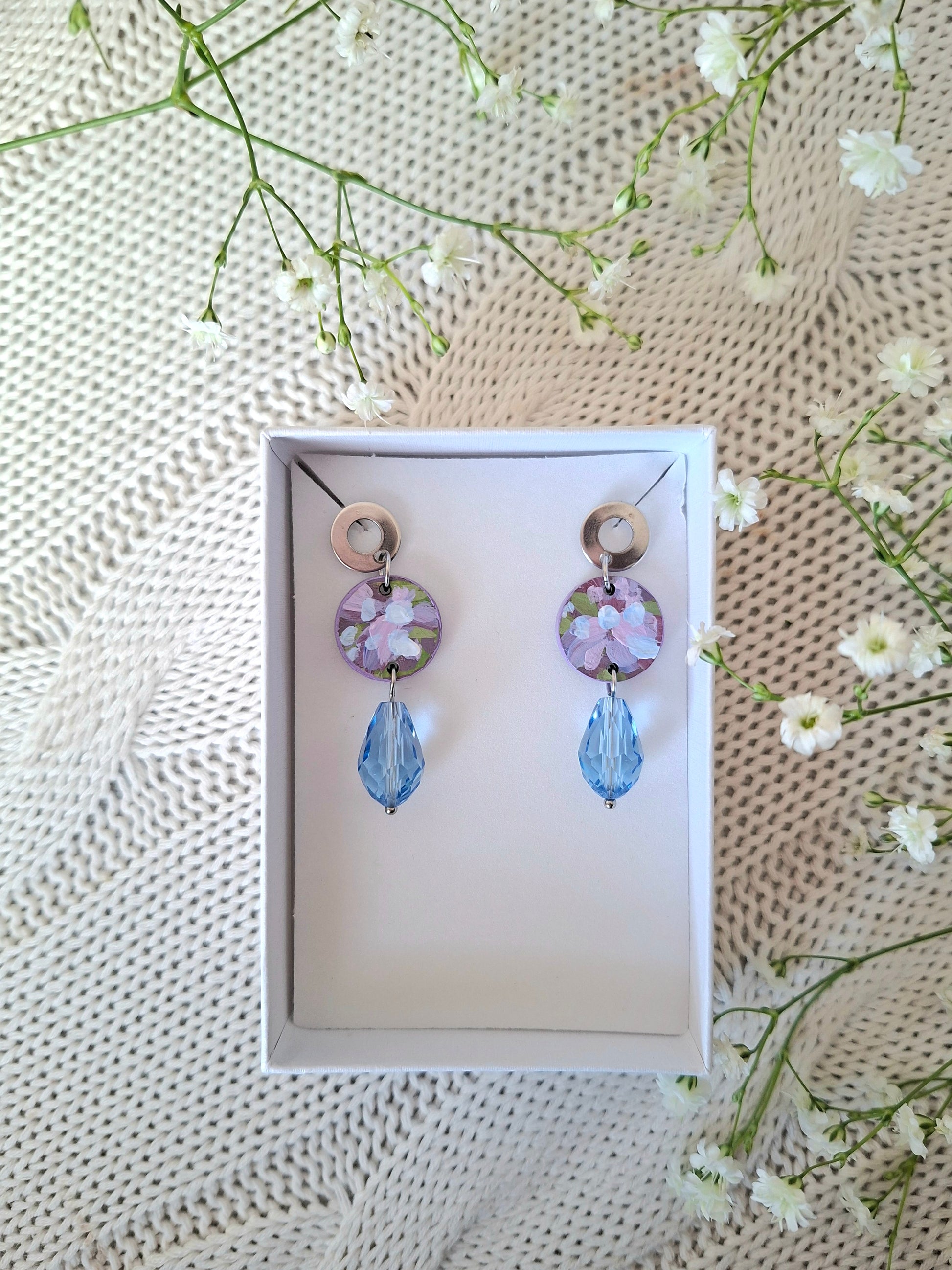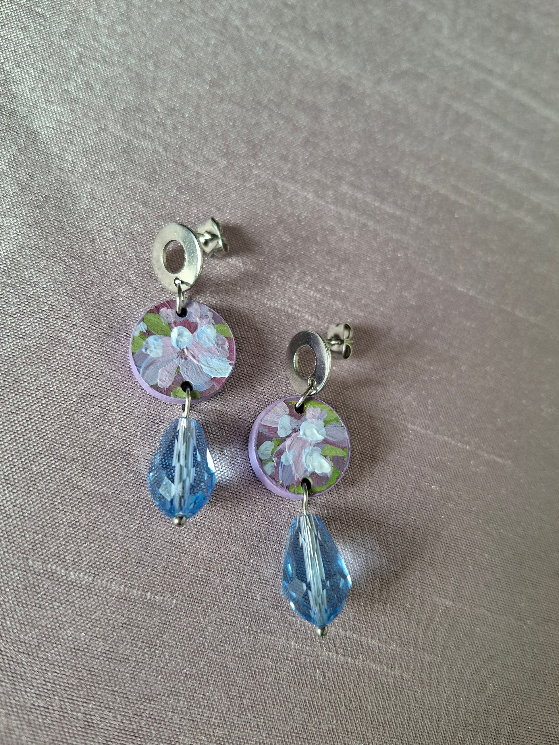 Materials: birch plywood with acrylic painting and light varnish, glass beads. Metallic parts are nickel-tested surgical steel.