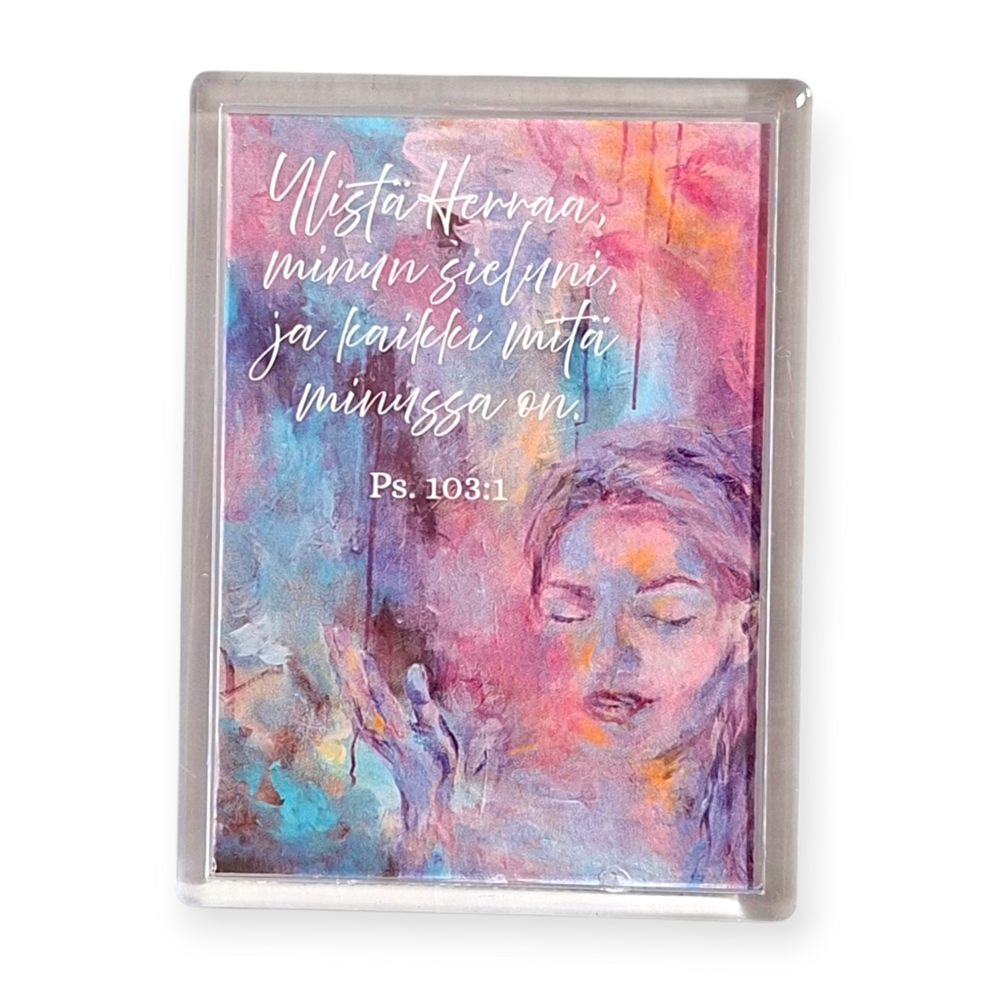Magneetissa on akryylikuoret ja sen ulkomitat ovat 95 x 70 mm.