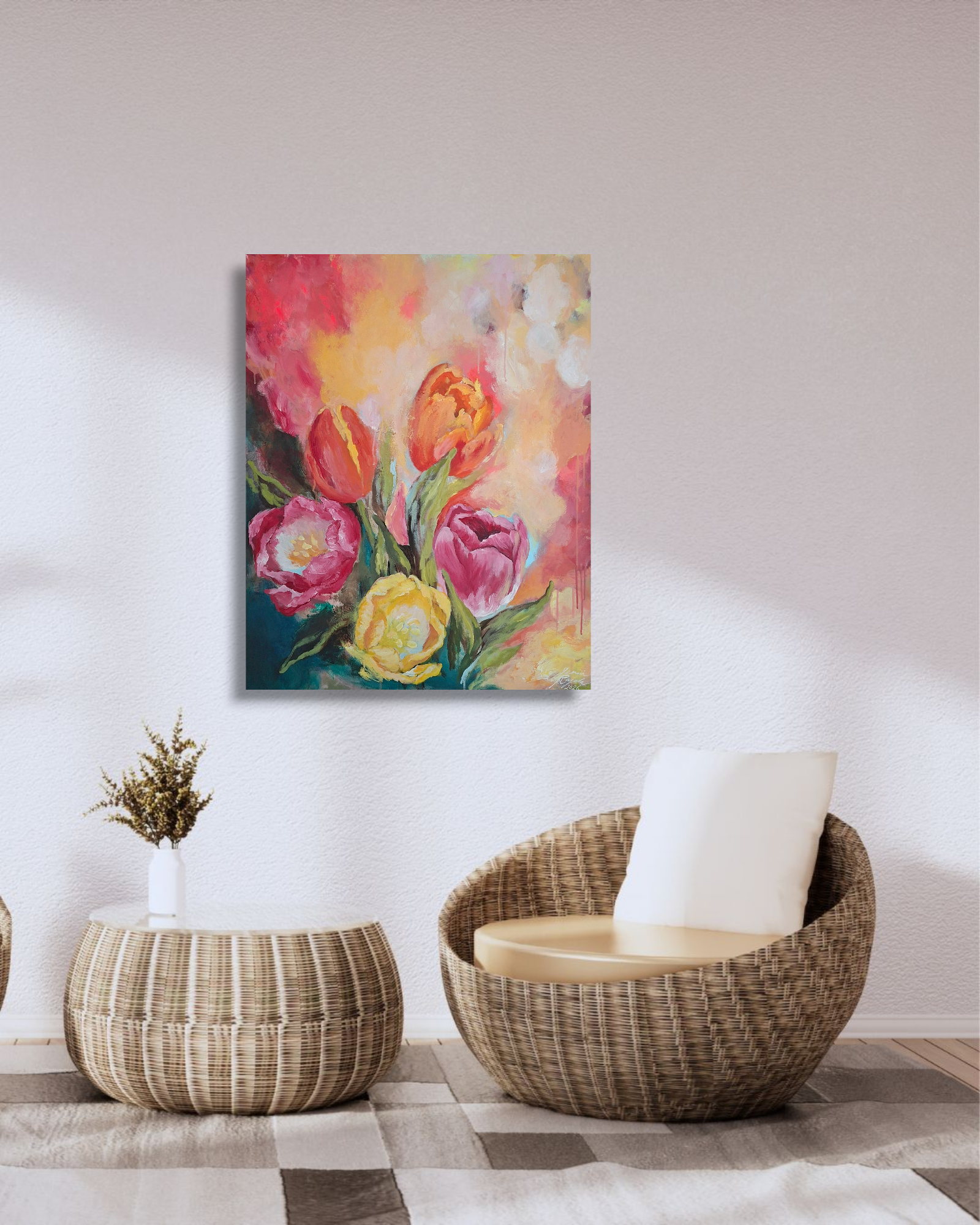 Please note that the painting will be sent abroad as a roll and requires to be stretched on a 92 x 73 x 2 cm frame!