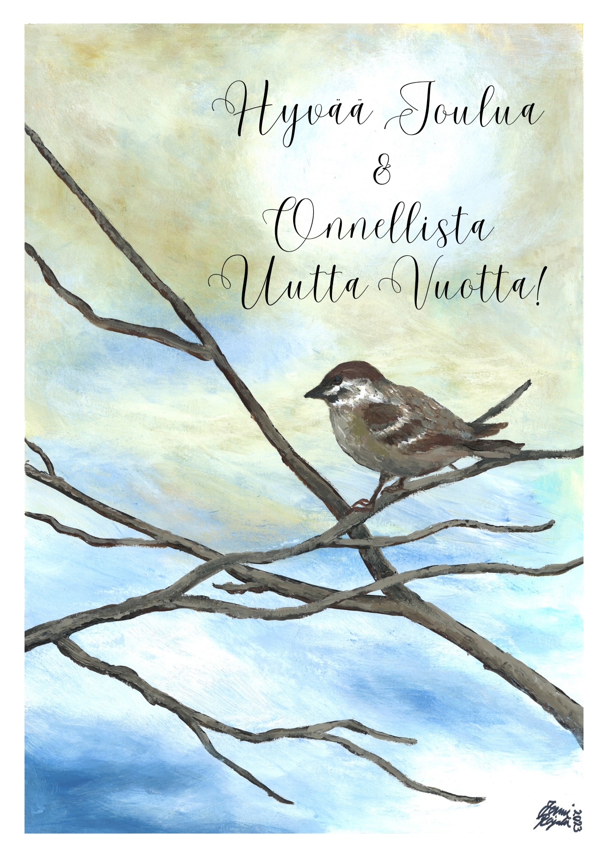 "Varpunen jouluaamuna" joulukortti